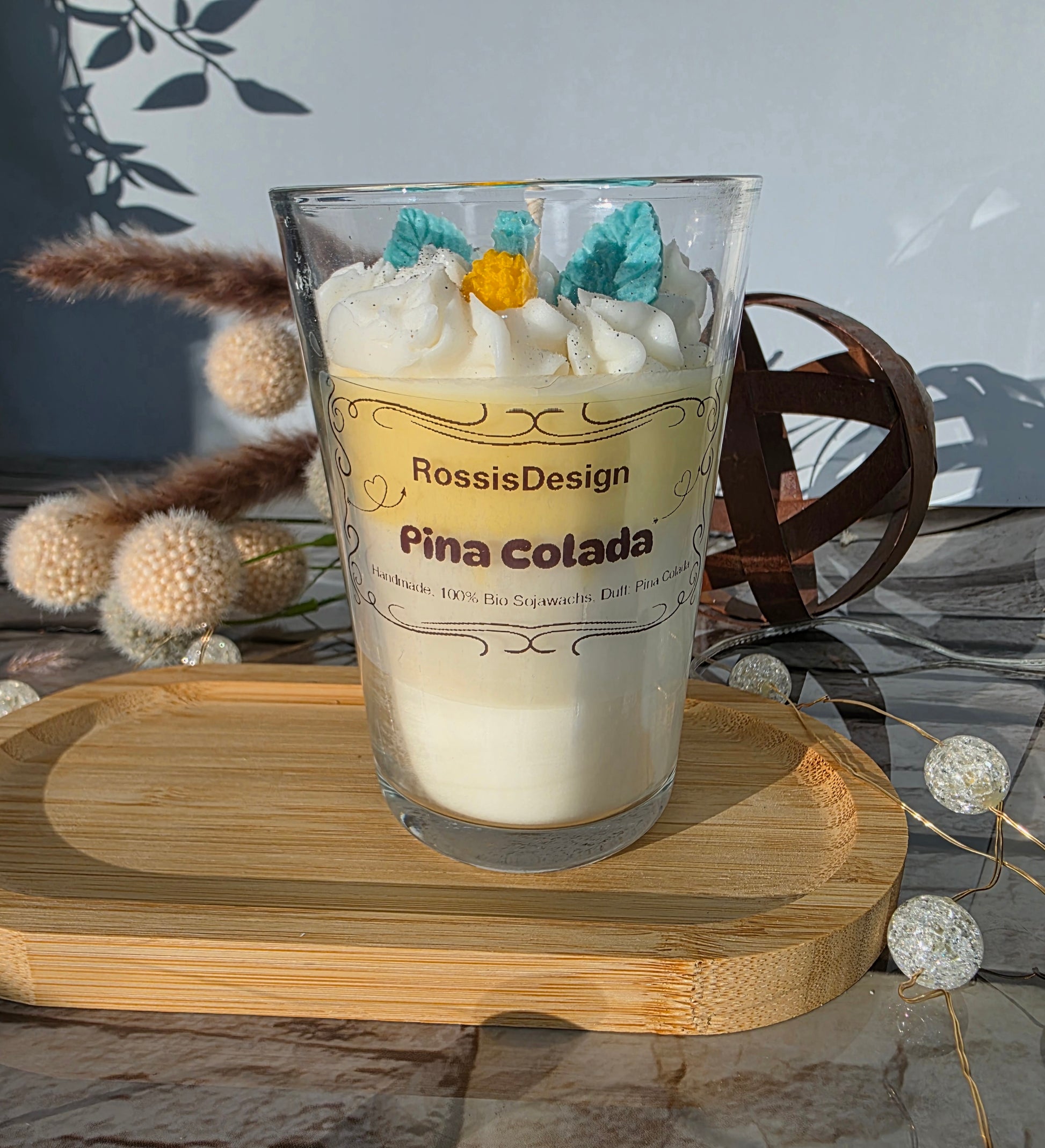 Tauche ein in süße Träume mit unserer Pina Colada Kerze – handgefertigt aus Bio-Sojawachs für ein reines Brennerlebnis. Diese köstliche Dessertkerze verströmt das verlockende Aroma von Pina Colada und ist das perfekte Geschenk für alle, die kleine Luxusmomente lieben. Nachhaltig, duftend und wunderbar zum Verschenken verpackt.